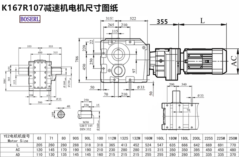 K168R108DRN200M4_K168R108DM180M4_K168R108DVE225M4_K168R108DR250M4減速機電機型號大全