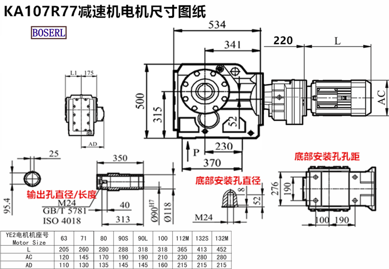 | 齒輪減速機 | KA108R78Y63M4 | KA108R78DRS132M4 | KA108RF78Y4KW |