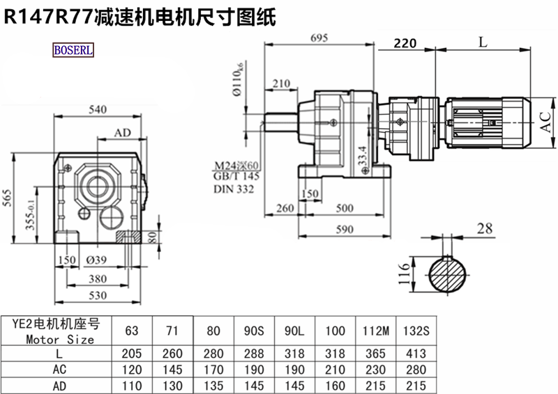 | 齒輪減速電機 | R148R78YVP63M4 | R148R78DVE63M4 | R148R78DM112M4 |