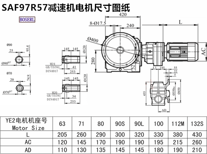 SAF98R58DM80M4_SAF98R58DRN90M4_SAF98R58DVE100M4_SAF98R58DR112M4減速機電機型號大全